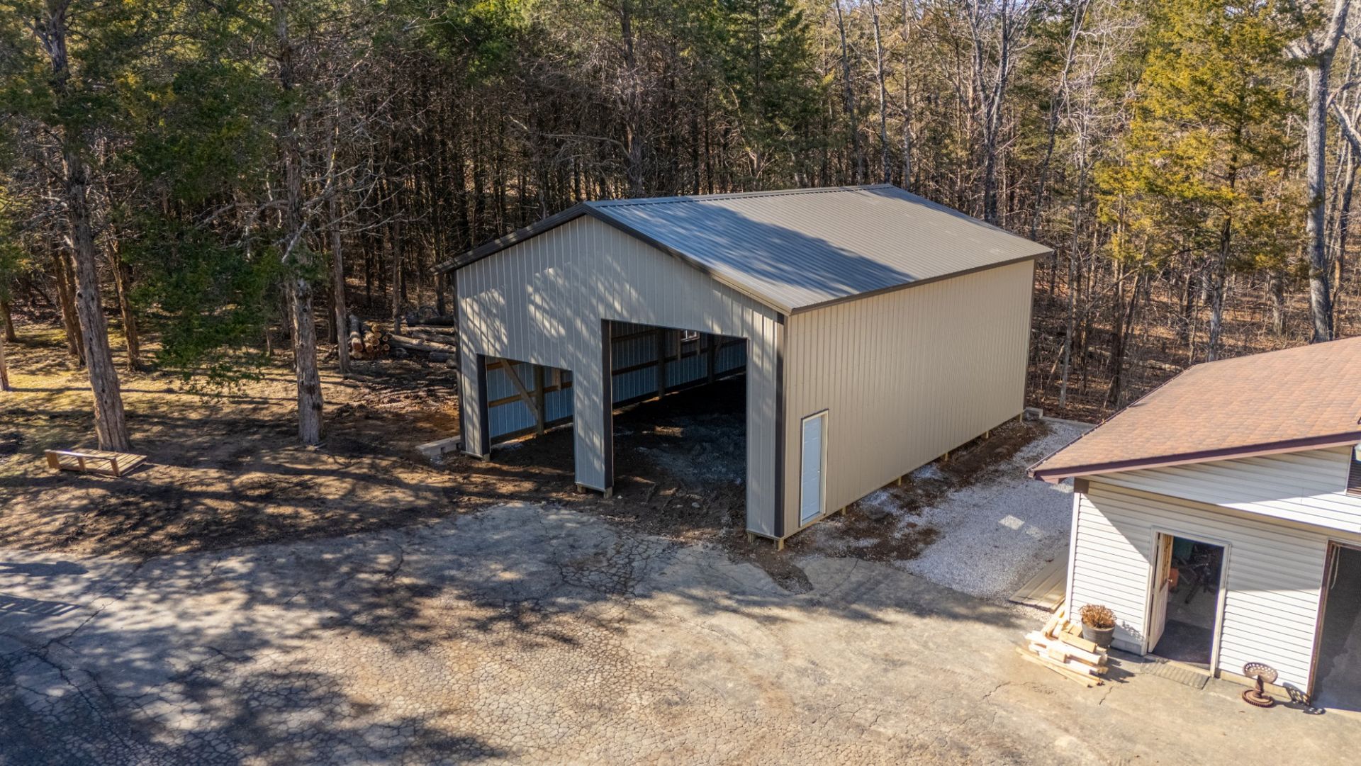 Your project begins with site evaluation and clearing in Hermann, followed by grading to establish a stable pad that sheds water and supports the posts. Treated columns are set at engineered intervals, braced with horizontal girts, and topped with roof trusses before metal roofing and siding go on. The result is a building that resists wind uplift, supports overhead storage, and keeps rain out of door seams.